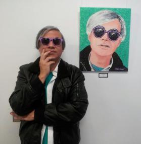 I read interviews and collected quotes. I went through pictures and YouTube videos (including one of him eating a hamburger that was much more enlightening than you’d think) to try to pick up his mannerisms and voice. I even had my hair cut in an early Warhol style (my friend Jerzey Cordero took care of the shape, and Claire’s make-up artistry took care of the color). And of course I attended that amazing exhibit at the McNay Art Museum. In the end, I found a whole new respect for Warhol and what he tried to accomplish in his work. And I hoped everything I learned would be enough to embody the Warhol persona when the day finally came.