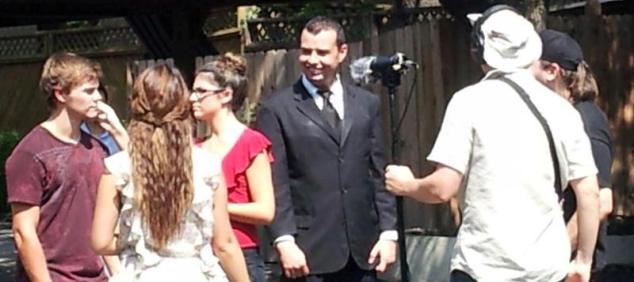 By now, of course, you should know my style well enough to know that “one of the warmer days we’ve seen this year” is a bit of an understatement. And in this case, even the phrase “bit of an understatement” might itself be an understatement. This was epic heat. Spectacular heat. And two of our actors (that would be Sergio and Kareem) would be wearing black suits right in the middle of it. To say that they, and all our cast and crew, were absolute professionals through it all would be a colossal understatement. They were the dictionary definition of the word trouper, and through it all, we saw that same kind of bond that united us on Dating Danielle.