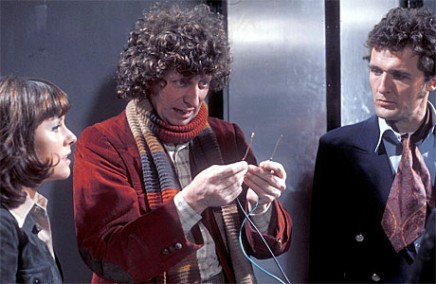 That’s the defining moment of “Genesis of the Daleks”: The Doctor stands with two wires, the power in his hands to wipe out an entire civilization before it can go out into the universe (it’s an eerie parallel to his earlier confrontation with Davros, the creator of that civilization). Sarah Jane and Harry encourage him to do it, to think of the greater good, but the Doctor questions whether that greater good is worth the evil he must do in its name.